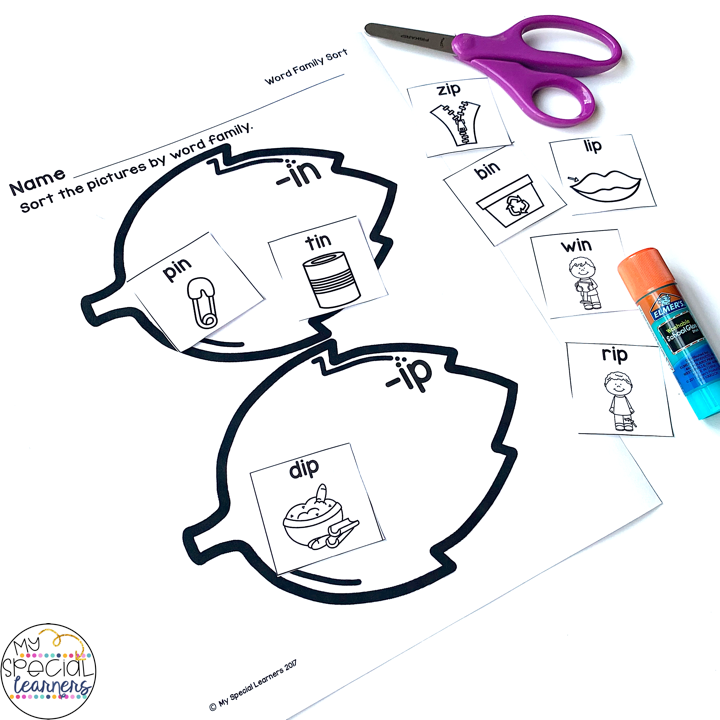 I think one of my favorite worksheets in the entire pack are the word family sorts. There are a variety of word family sorts for your students who are starting to read.