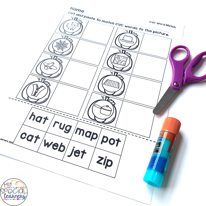 For my beginning readers, I loved these CVC word to picture match worksheets. There are a few included for a variety of CVC words.