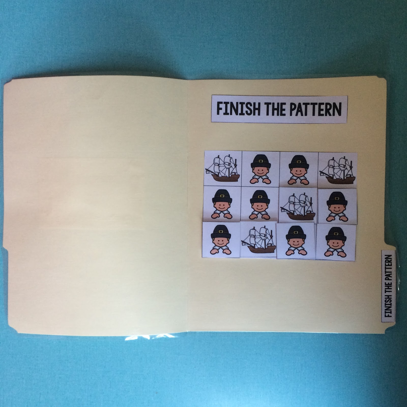 These are a few of the file folder activities we used during November. Each month we have 20 new folders to use!