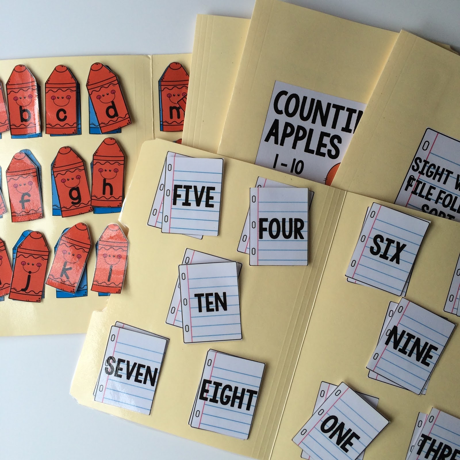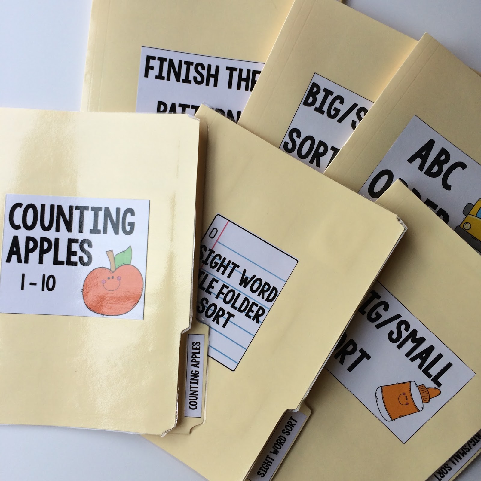 These are my Back to School File Folders for September! Each month I have a mixture of themed file folders with sight words, counting, ABC match, ABC order, big/small sort, etc. This has been SO helpful to keep my kiddos on their toes, and they are always looking forward to when we switch out the file folders! Best of all? After this year, we will be SET for next school year!
