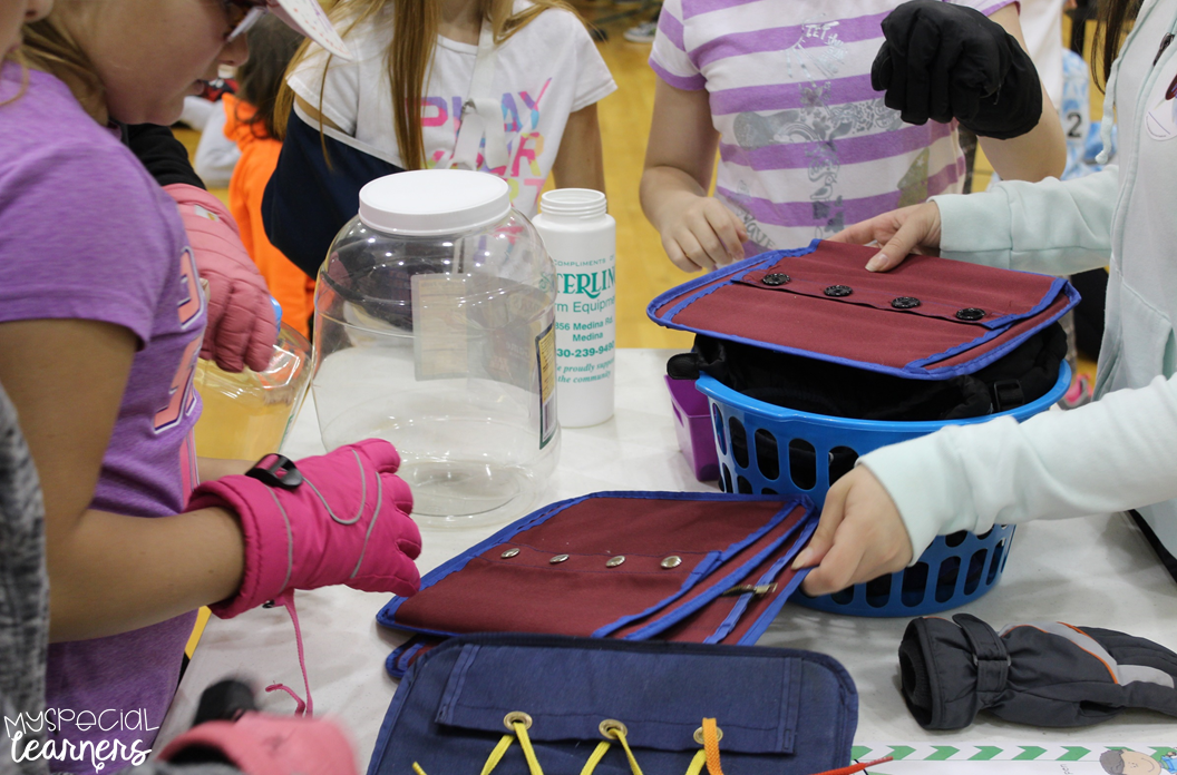 I grabbed a bunch of gloves from our school lost and found and had the students trying to pick up pennies, tie their shoes, etc. It was eye opening for them!