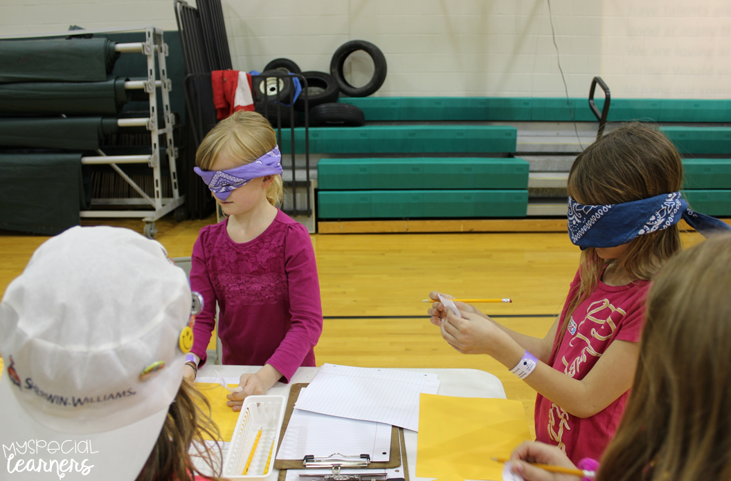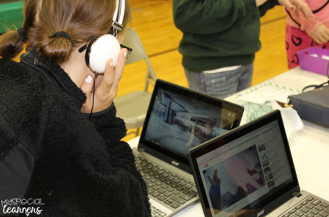 One of our stations had Google Chromebooks set up with a couple different things. One was white noise where they had to listen to the white noise while doing the specified activity. I also had some set up to show them a video through the eyes of someone with Autism. They all loved this! I e-mailed the Autism video to classroom teachers in case someone didn’t get a turn. You can see the video HERE.