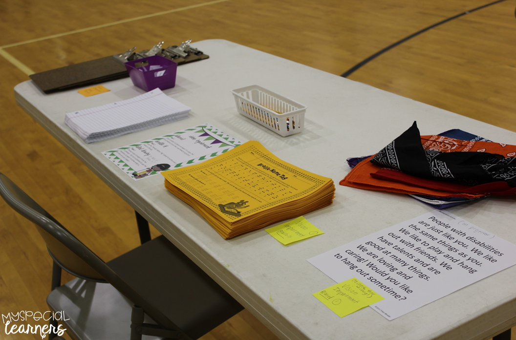 Last year, I used this Disability Awareness Day Kit from The Bender Bunch to host a schoolwide awareness day for 3rd-5th graders. I was lucky enough to have a principal that let me get a sub for the day to run this wonderful event. I set aside about an hour and 15 minutes per session and did each grade level at their own time. For the event, I sent out parent volunteer forms and got parents to sign up for a time slot to help run a table!