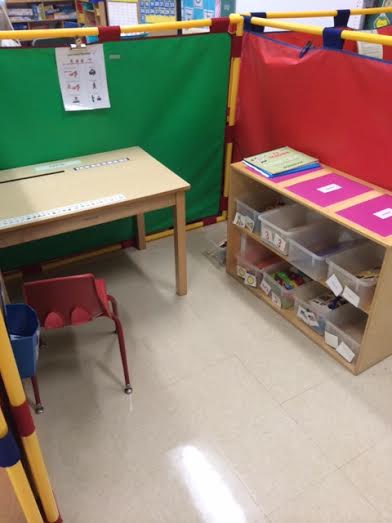 As you can see, I have these handy divider walls to separate the big spaces in my room that are marked on my classroom floor plan. These are GREAT for lowering distractions for my students! Now, if only they weren’t in those God awful primary colors. (Sorry guys, I seriously hate those colors and have REALLY contemplated spray painting them!!!)