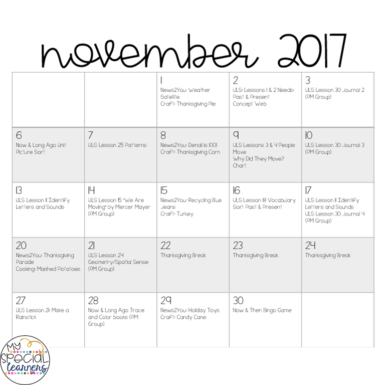 So as November began, I sat down with a glass of wine and started digging through all of the November lessons. This month is all about People Long Ago, which is great for November and adding in some Now vs. Long Ago work! There are certain lessons I ALWAYS do (the comprehension ones for 1-4 and the vocabulary sorts always happen!). There are certain lessons that I HATE (that might be a strong word but there are a few lessons on the Elementary level that I truly do not like at all). Some of the lessons I never use are the telling time, the “history” lesson (which is always a timeline and basically just ordering numbers in numerical order), the scrambled sentences, and a few others. Again, these things are just MY personal preference, and obviously things change with different groups of students!