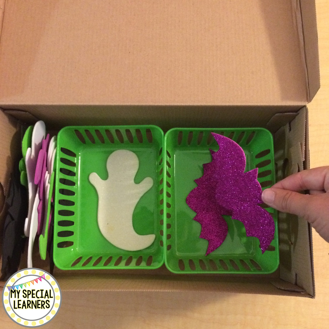 Found these little plastic trays at Dollar Tree and the Halloween foam shapes at Target Dollar Spot! Great easy sorting activity š